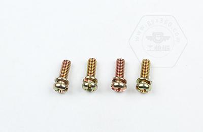 • 產(chǎn)品描述:組合螺釘,又稱為組合件,是指組合供應(yīng)的一類緊固件,如將某種中期螺釘或螺栓、自攻螺釘與平墊圈或彈簧墊圈、鎖緊墊圈組合供應(yīng)。 何謂二組合、三組合呢?二組合就是一螺絲配一平墊或是彈墊組合而成,三組合是螺絲配一彈墊和一個平墊組合而成。